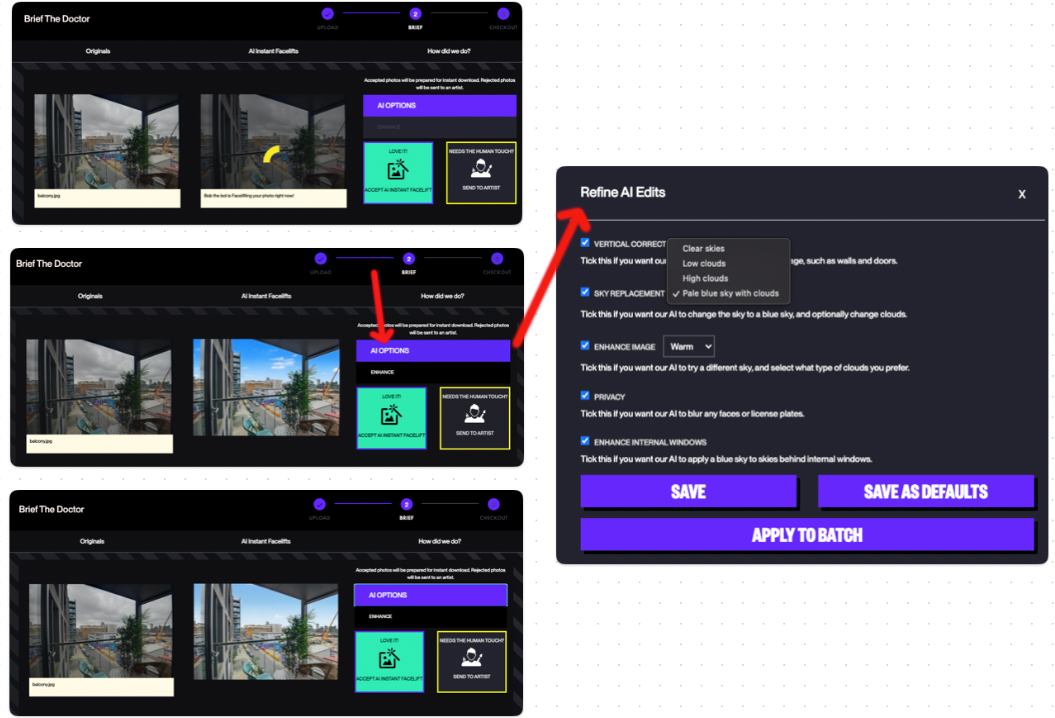 The 'Refine AI Edits' button gives you choices, which can either apply to one batch of photos, or can be set as your preferred default setting.